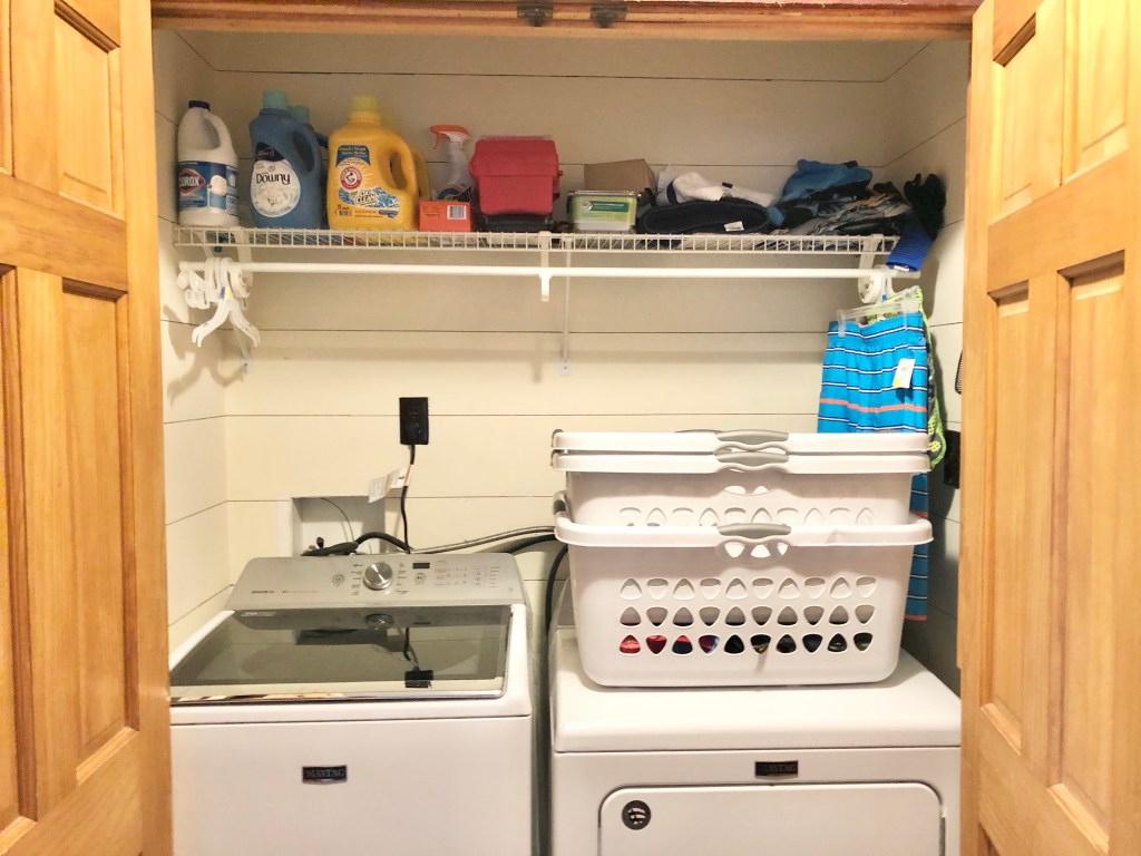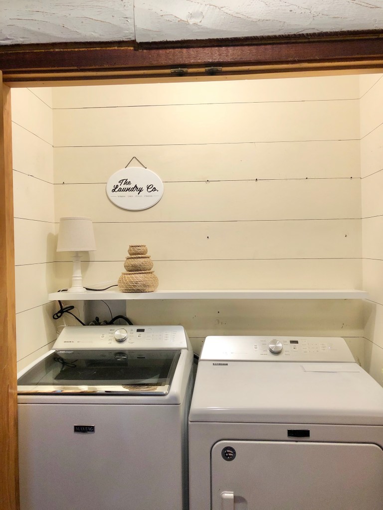 I had been wanting to update our laundry room {and by room I mean closet} since we moved into our fixer upper three years ago. The doors seem to be open more than they are closed because as we all know, washing & folding laundry is a never ending cycle. And there’s no two ways around it.. this space was an eyesore.