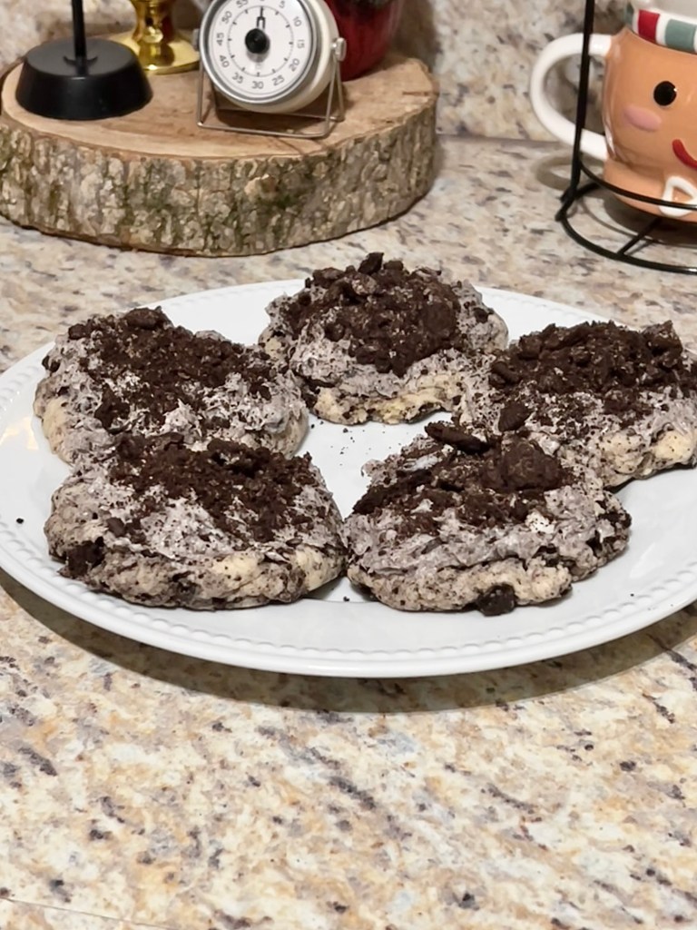 Allow cookies to cool completely before frosting. Sprinkle with crushed Oreos. Enjoy!